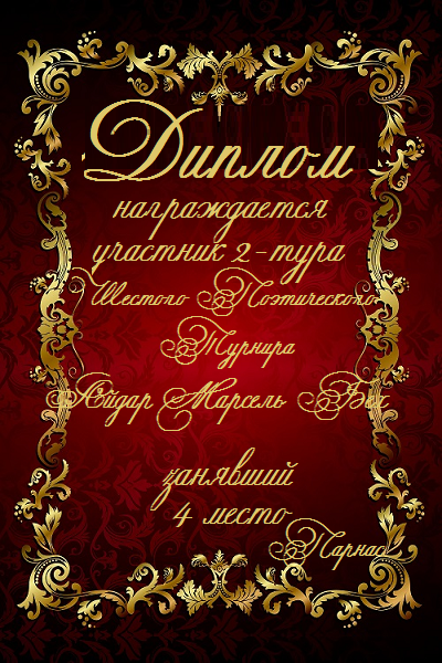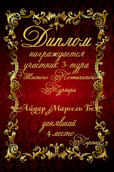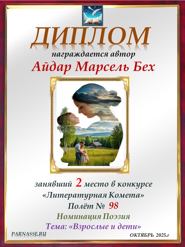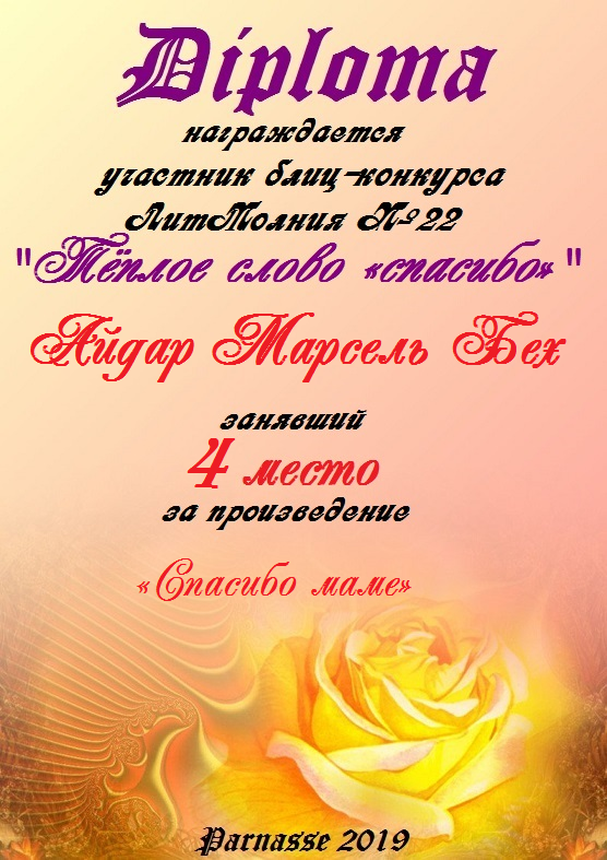 Поздравляю с занятым 4 местом в конкурсе «Литературная Комета – Полёт № 35» - номинация поэзия!