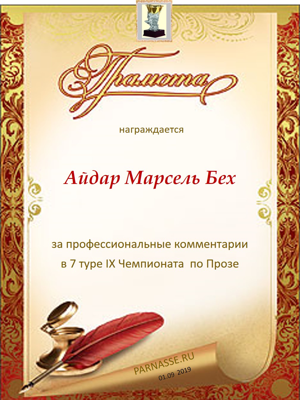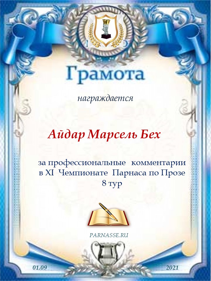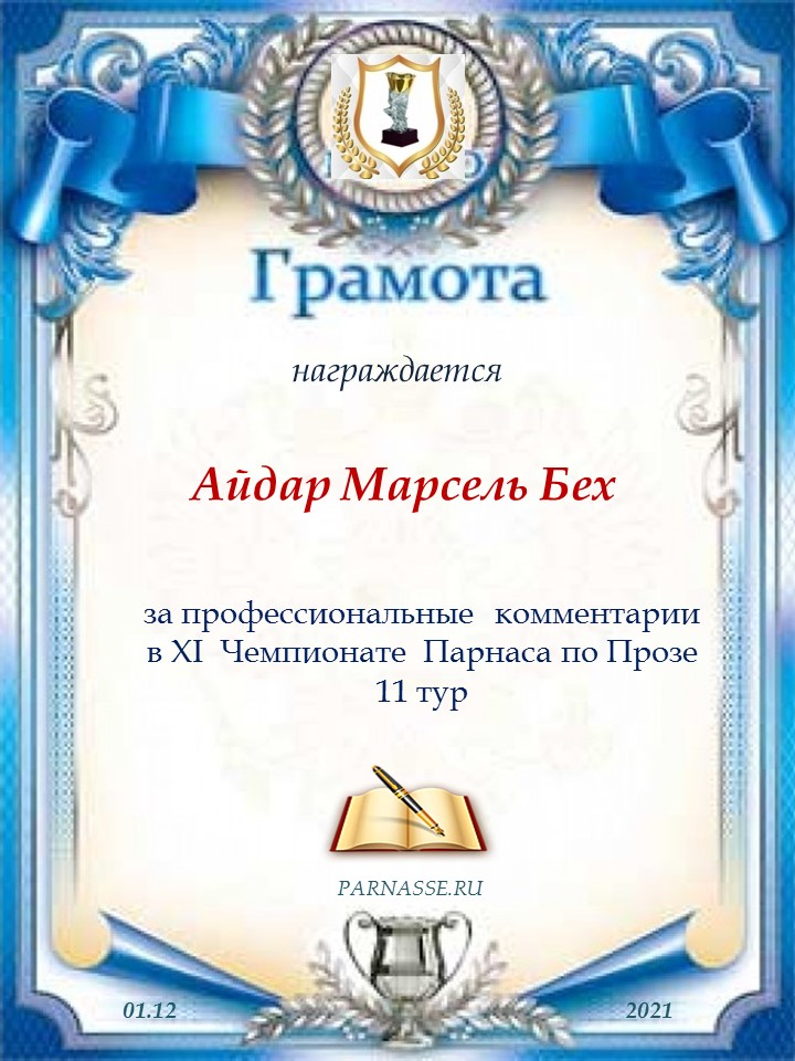 Благодарю за профессиональные комментарии в 9 туре XI Чемпионата Парнаса по Прозе!