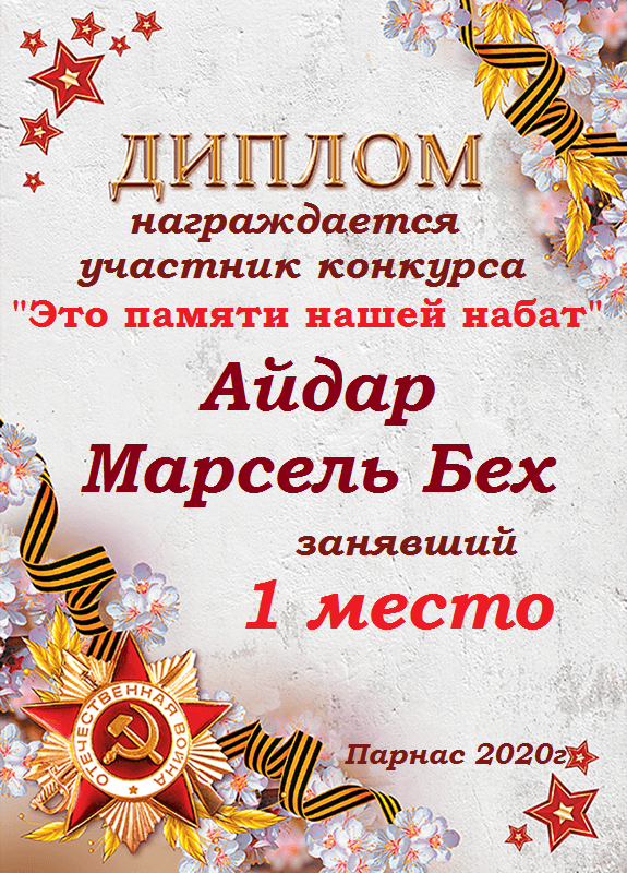 Первое место по решению Администрации и Главного судьи конкурса "Навечно в памяти"