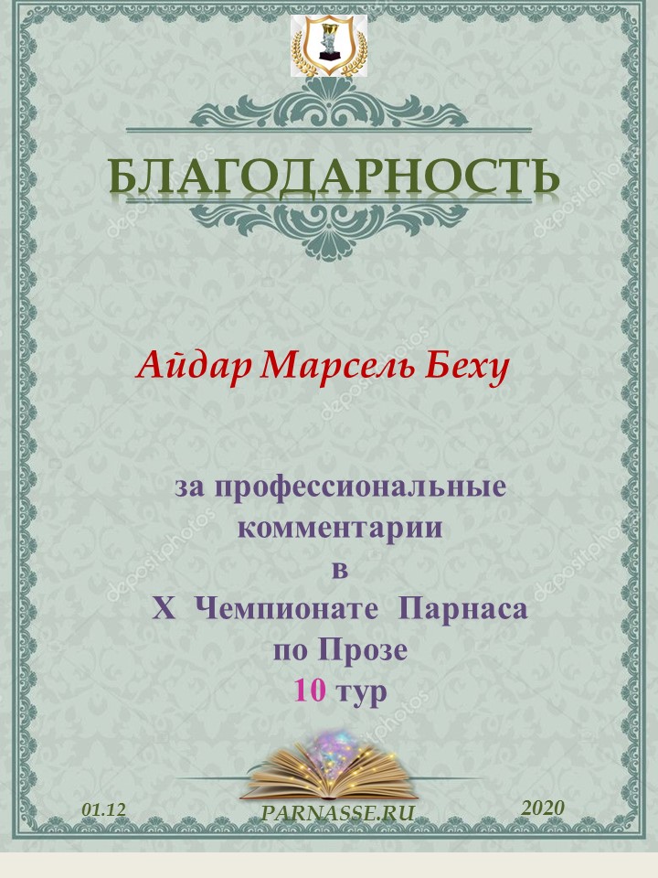 Большое спасибо за профессиональные и объективные комментарии в 10 туре X Чемпионата Парнаса по Прозе!
