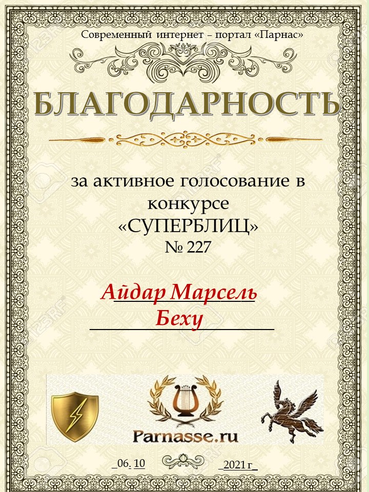 Благодарность за активное голосование в 227 конкурсе СУПЕРБЛИЦА!СПАСИБО БОЛЬШОЕ!