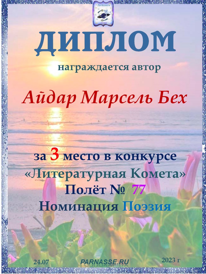 Поздравляю с занятым 3 местом в конкурсе "ЛитКомета - Полёт № 77" - Номинация Поэзия!