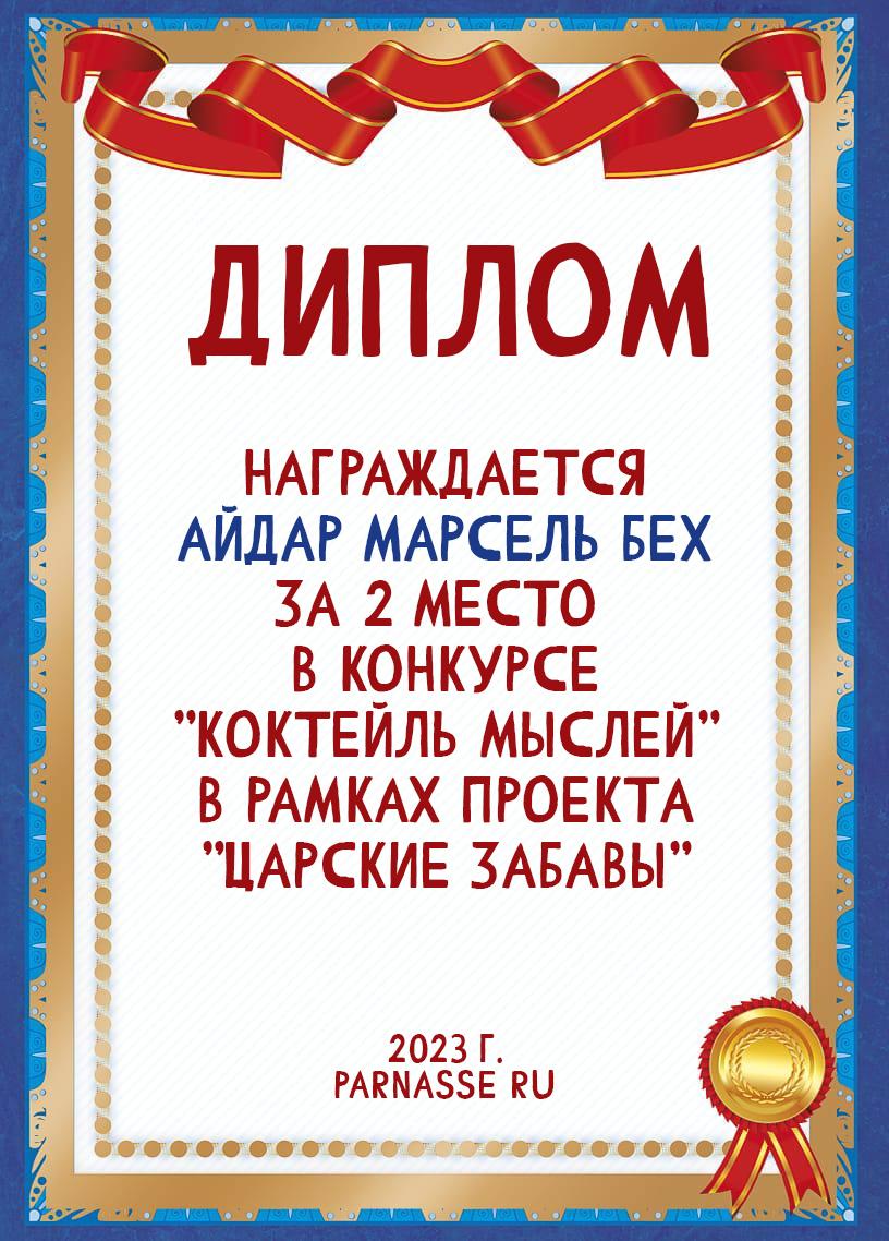 ![]() Медаль за 2 место в конкурсе "ЛитКомета - Полёт № 93"- Номинация Поэзия