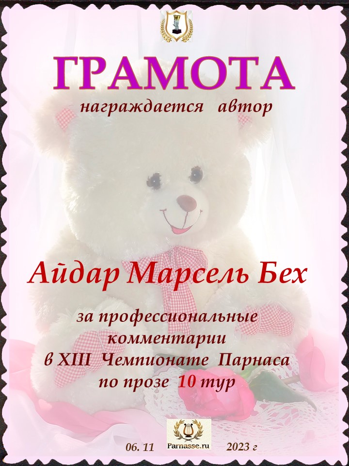 Благодарю за профессиональные комментарии в 10 туре XI Чемпионата Парнаса по Прозе!