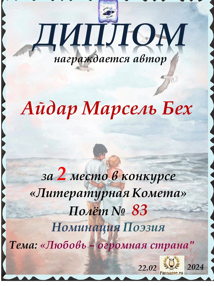 Поздравляю с занятым 2 местом в конкурсе "ЛитКомета - Полёт № 83" - Номинация Поэзия!