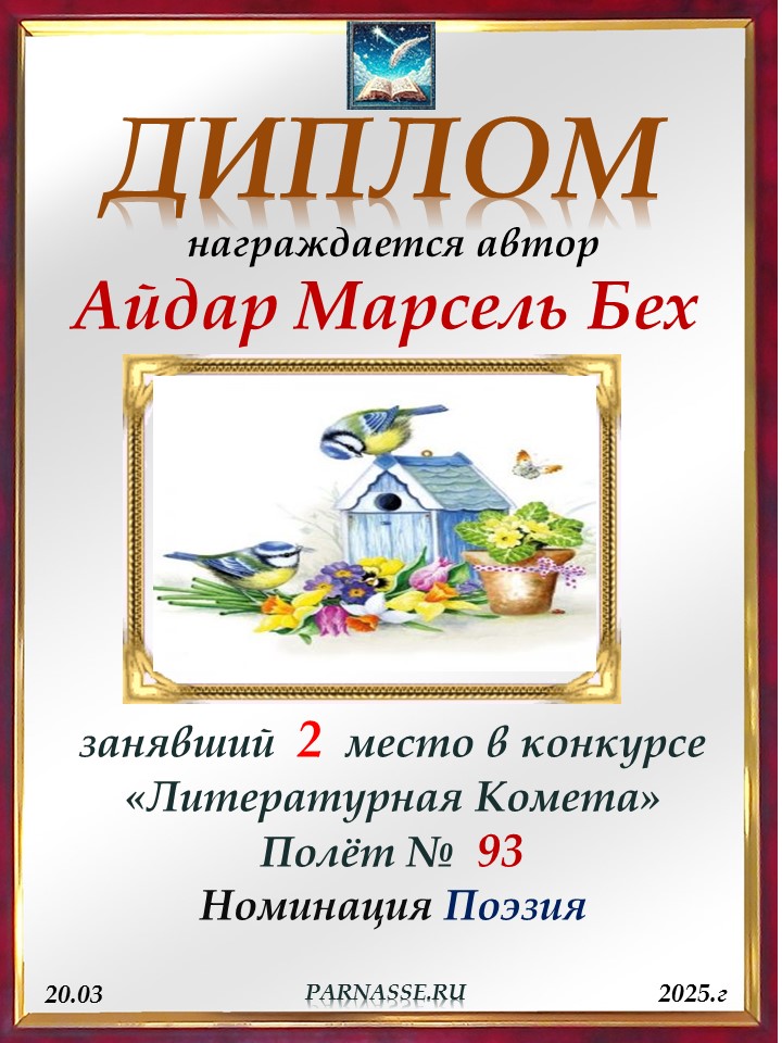 Поздравляю с занятым 2 местом в конкурсе "ЛитКомета - Полёт № 93" - Номинация Поэзия!