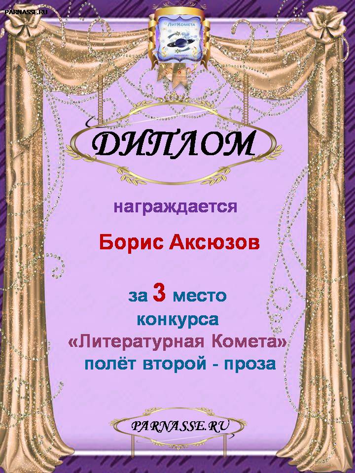 ![]() За четвёртое призовое место в 3 туре Чемпионата Прозы