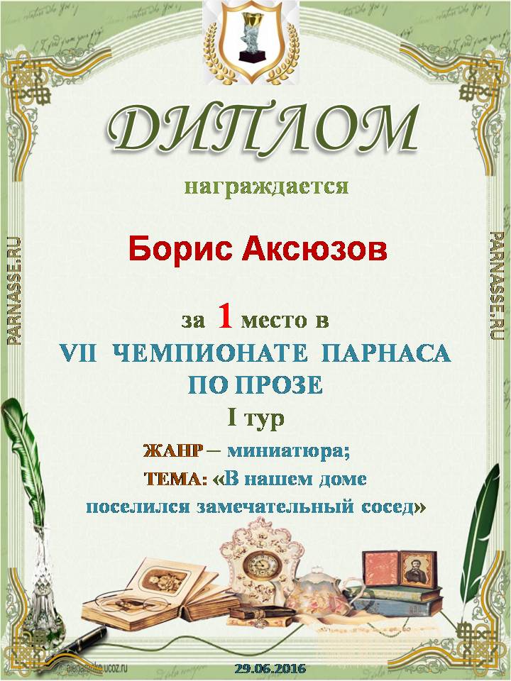 Премного благодарен Вам, Борис, за ощутимую помощь в проведении Чемпионата прозы!