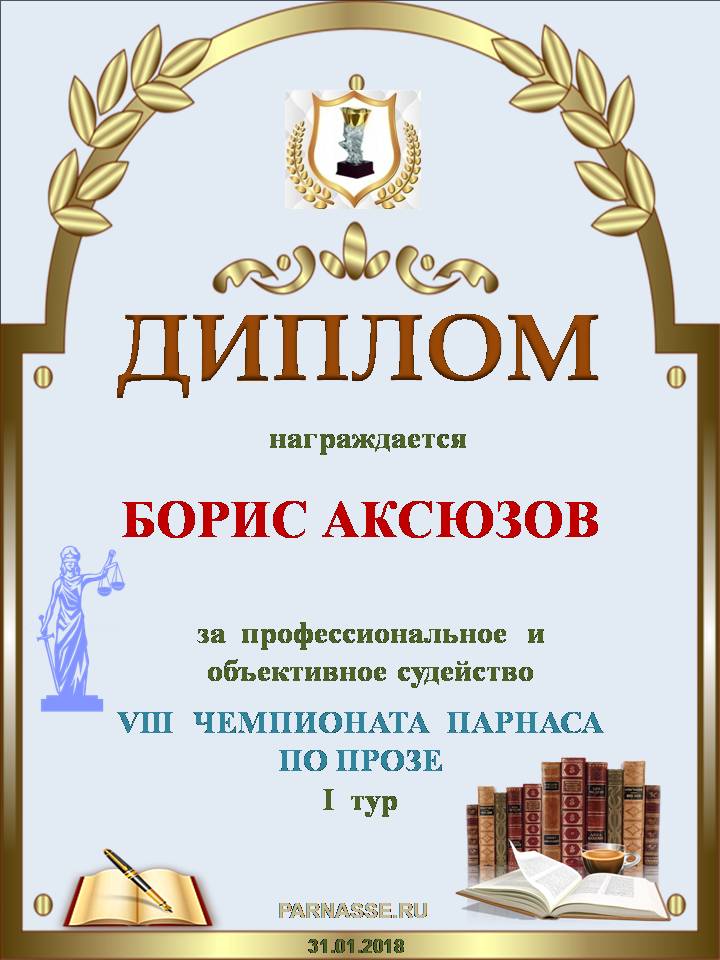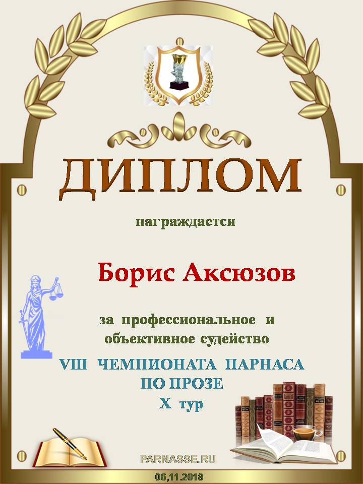 За высокопрофессиональное судейство в 3 туре IX Чемпионата Парнаса по Прозе