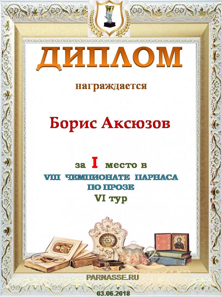Поздравляю с заслуженным 1 Местом в 6 туре!Удачи и вдохновения Вам, Борис!