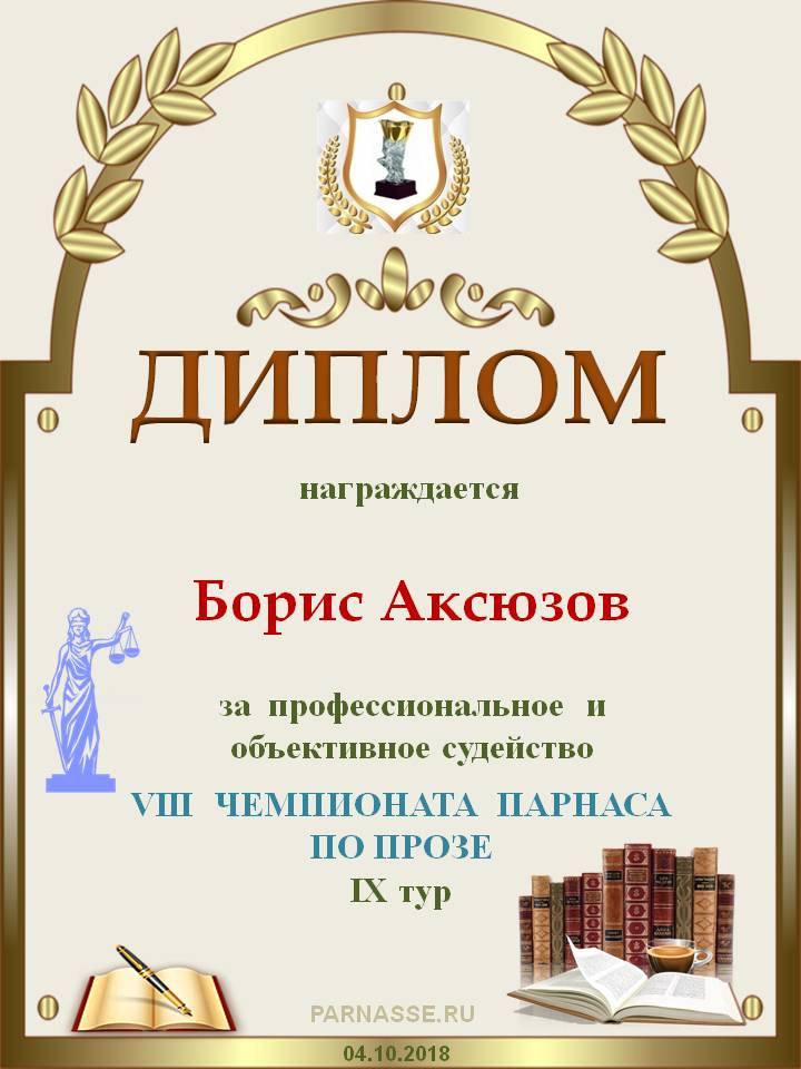 Спасибо за объективное и высокопрофессиональное судейство в 5 туре IX Чемпионата Парнаса по Прозе!
