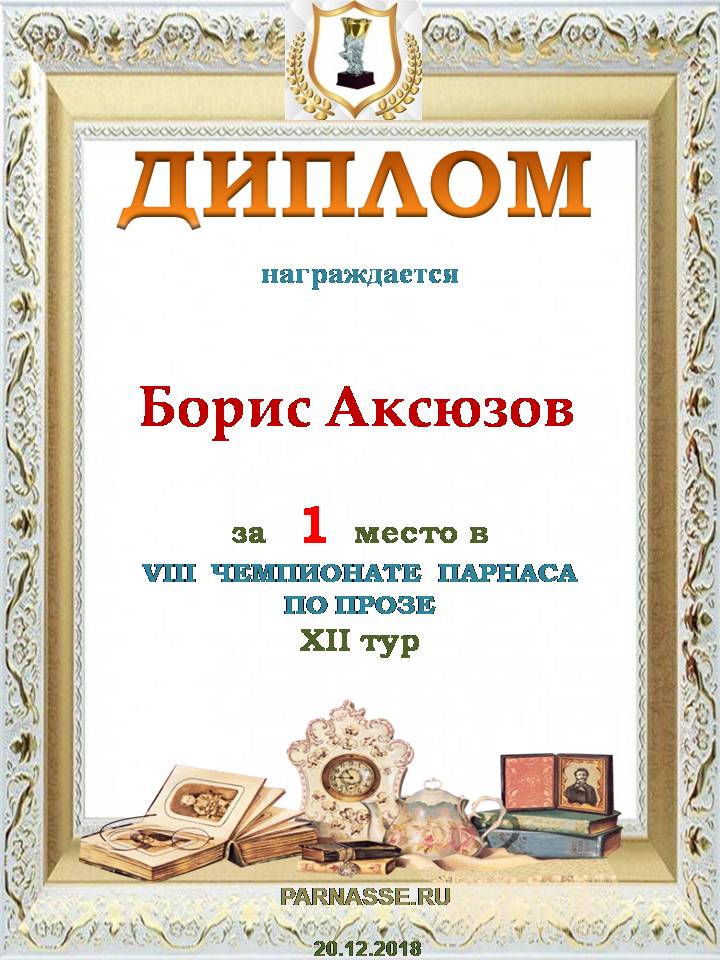 Поздравляю с занятым 1 местом в 12 туре Чемпионата по Прозе!