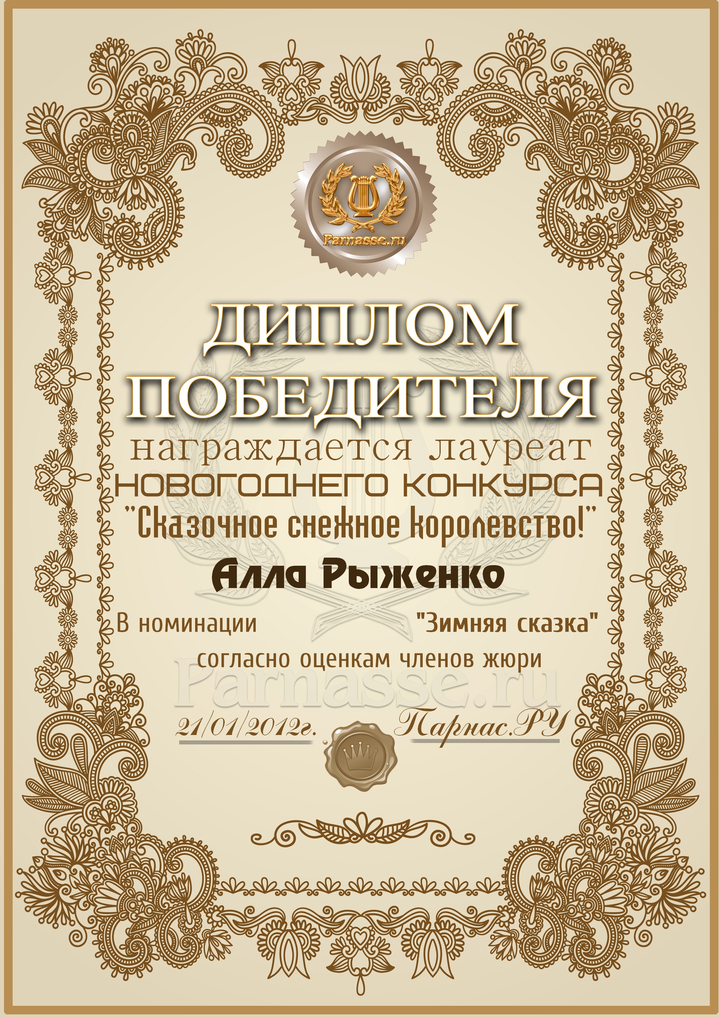 Диплом за 3 место в конкурсе "Сказочное снежное королевство!"