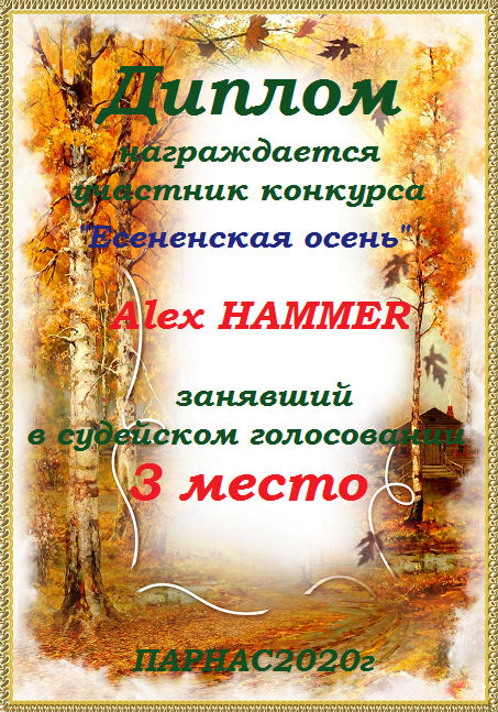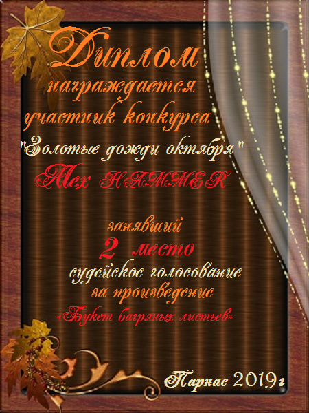 Второе место по итогам литературного конкурса «Замёрзла осень в ноябре», судейское голосование. Поздравляем с прекрасной победой!