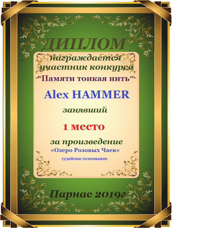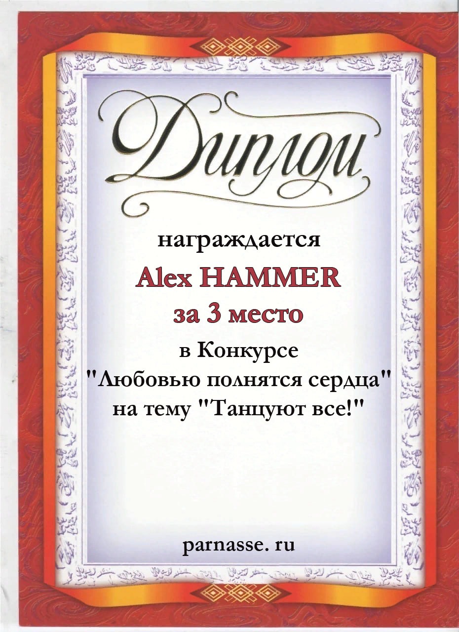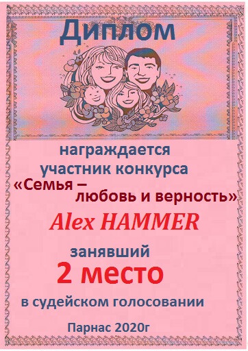 Первое место по итогам конкурса «Ветер снова мне шепчет о счастье ", по итогам судейского голосования. Поздравляем с прекрасной победой!