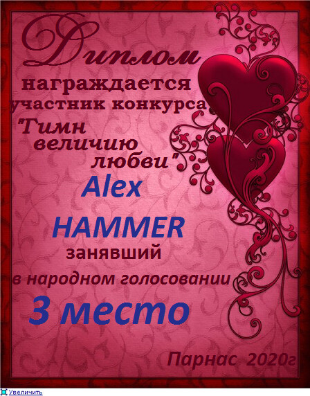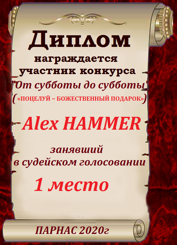 Первое место по итогам конкурса «Сладко-горький привкус поцелуя», судейское голосование. Поздравляем с прекрасной победой!