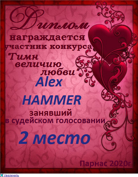 Второе место по итогам конкурса "Твой Стих, как Божий Дух, носился над толпой", судейское голосование. Поздравляем с прекрасной победой!