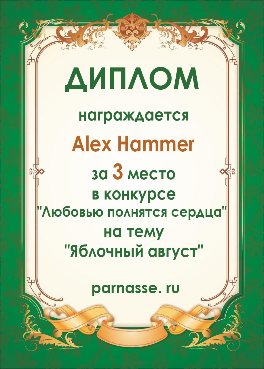 3 место в конкурсе "Любовью полнятся сердца" на тему "Яблочный август"