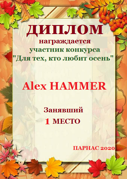 Первое место по итогам литературного конкурса – триады: «Для тех, кто любит осень». Поздравляем с прекрасной победой!