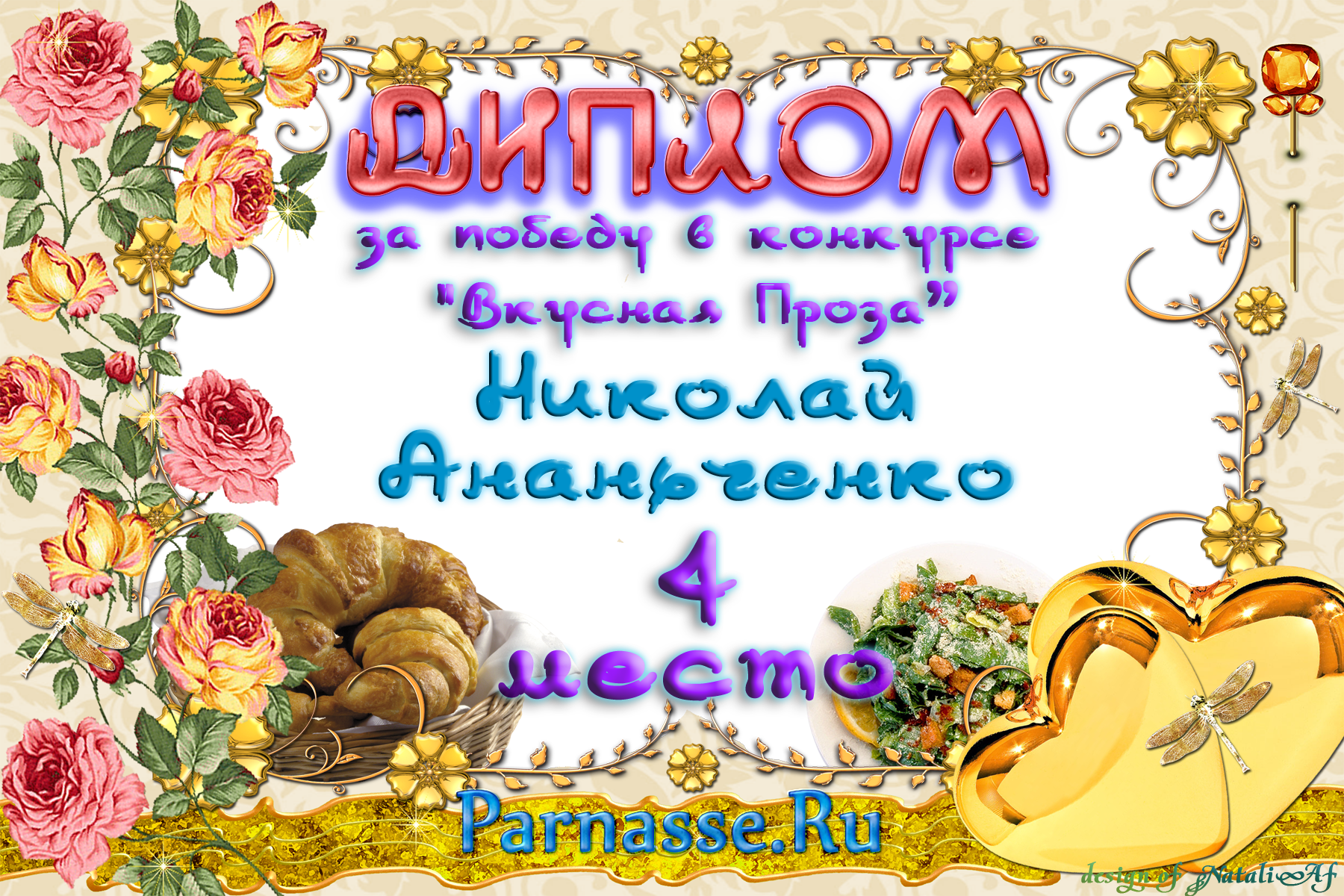 Диплом за победу во "Вкусном конкурсе" ВКУСНАЯ ПРОЗА!