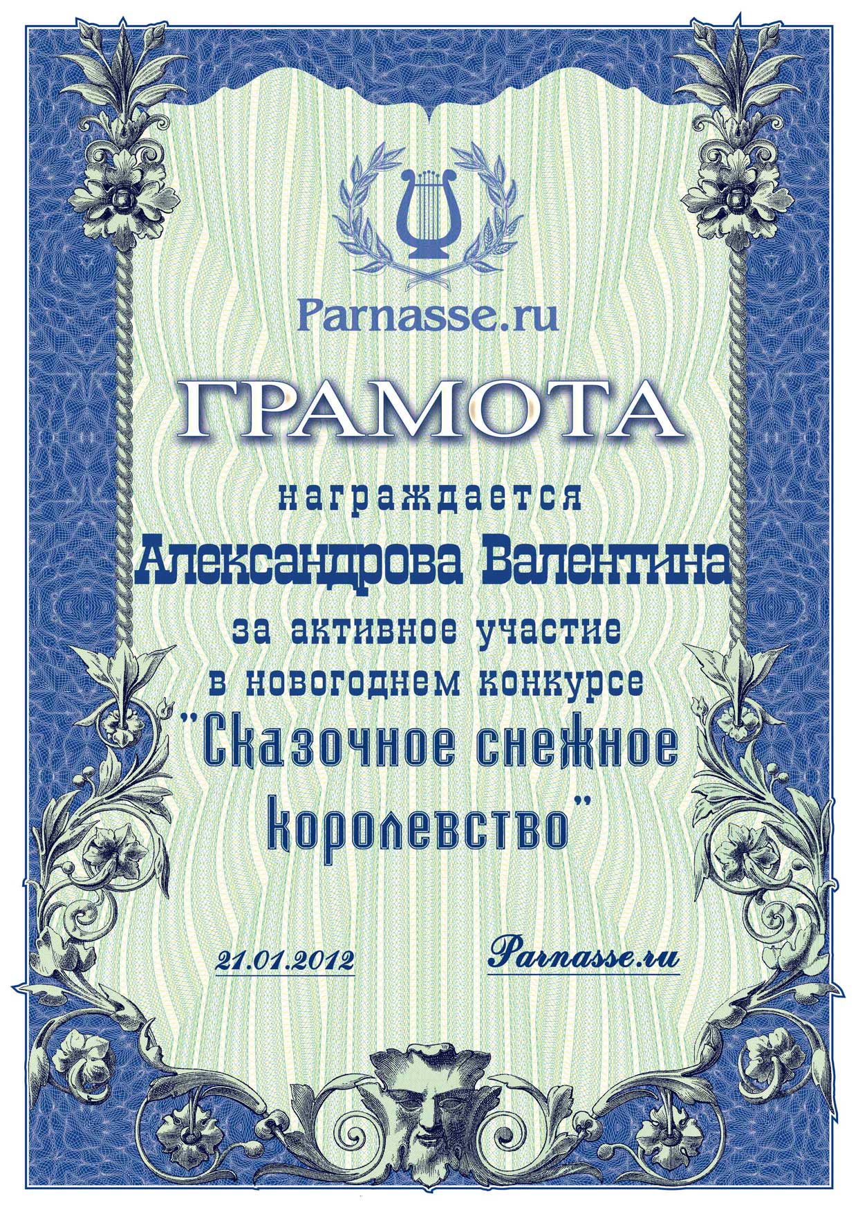 От лица Администрации творческого портала "Парнас" вручаем Вам этот памятный знак с самыми наилучшими пожеланиями! Пусть Вас весь год не покидает творческий запал, удача, а здоровье будет столь же крепким и нерушимым, как и традиция Новогоднего праздника! Счастья, успехов и любви Вам и Вашей семье, друзьям и близким!