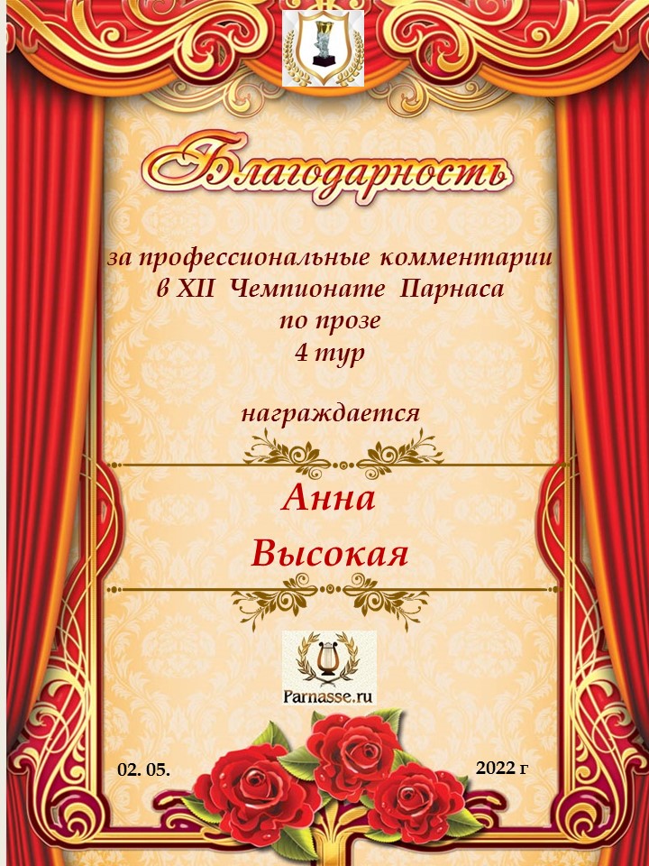 Подарок от: Чемпионат Парнаса по прозе, 2 мая 2022:
