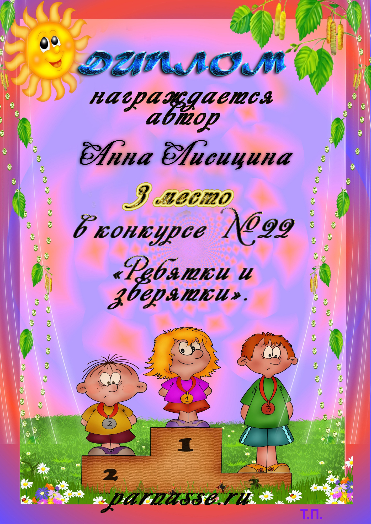 ![]() медаль за третье место в конкурсе Поэтических фантазий