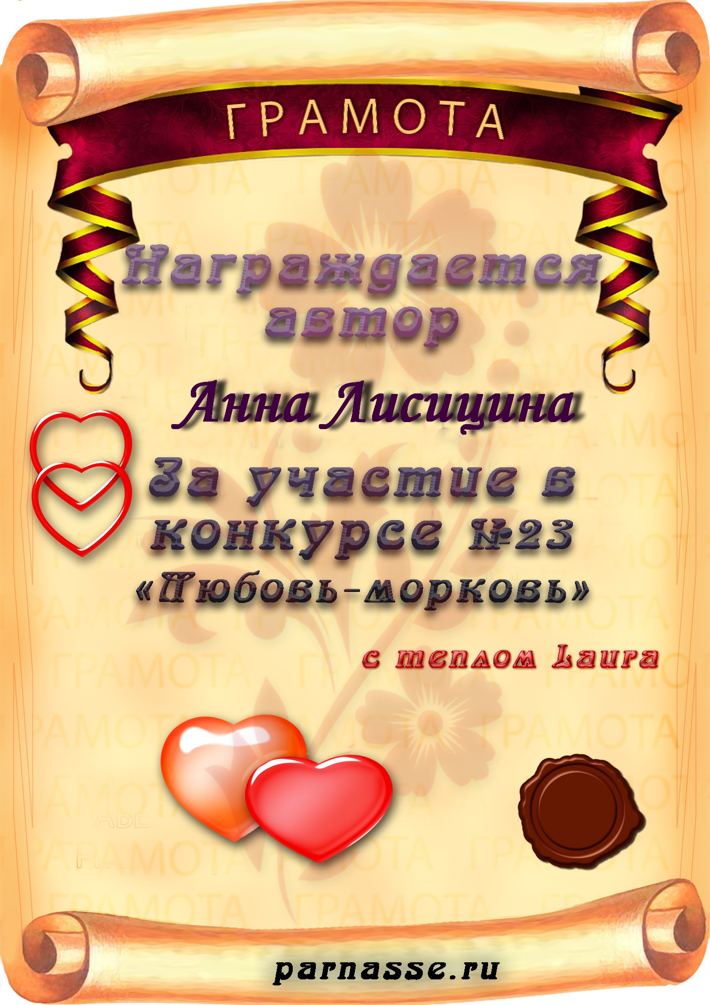 Похвальная грамота за 4 место и активное участие в конкурсе лимериков № 53+ (4.05.2014 г.)
