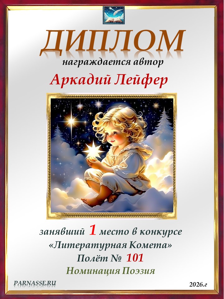Поздравляю с занятым 1 местом в конкурсе "ЛитКомета - Полёт № 101" - Номинация Поэзия!