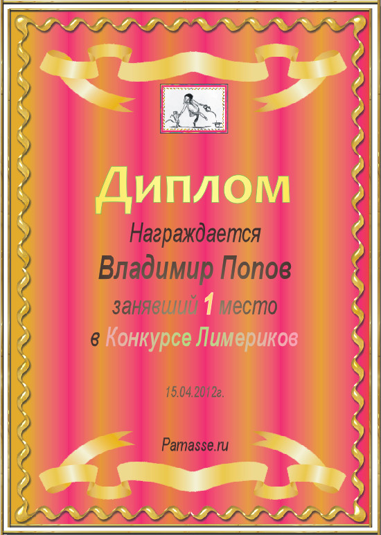 Похвальная грамота за 5 место в конкурсе лимериков № 51+ (23.03.2014 г.)