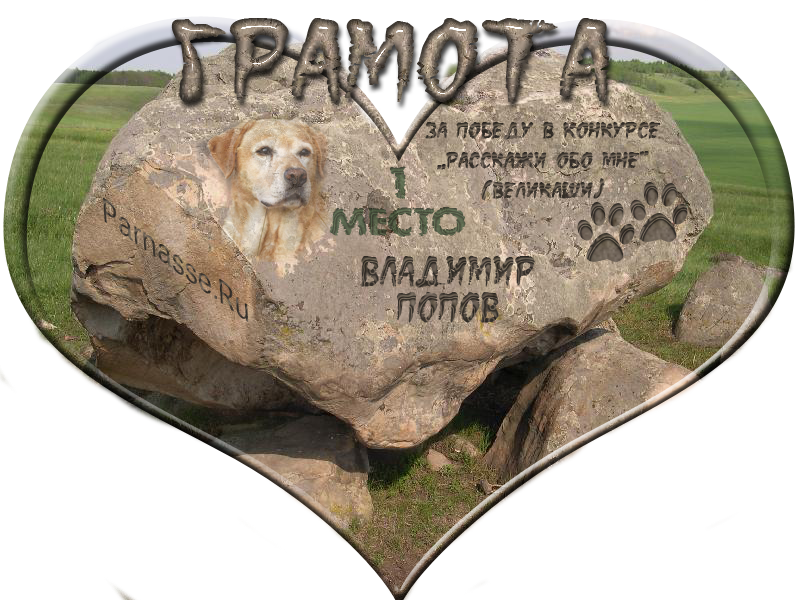 Третье место в юмористическом конкурсе «Продлим жизнь смехом!», в номинации «Весёлая Песенка - домашнее исполнение»! Автору слов Песни «О ВЕРНОМ ДРУГЕ»! Поздравляем с блестящей победой в конкурсе!