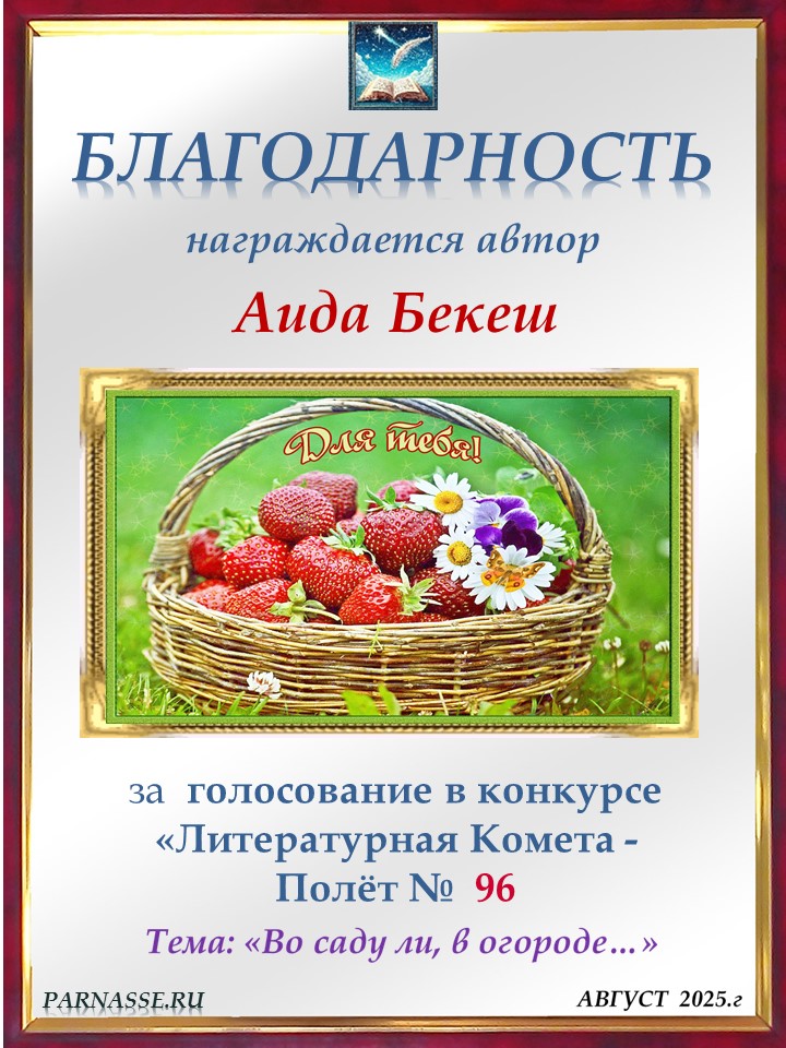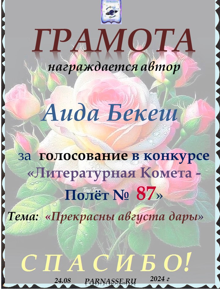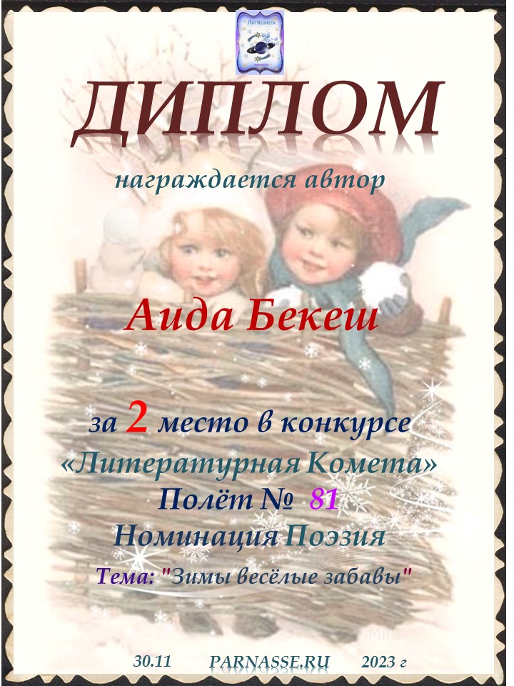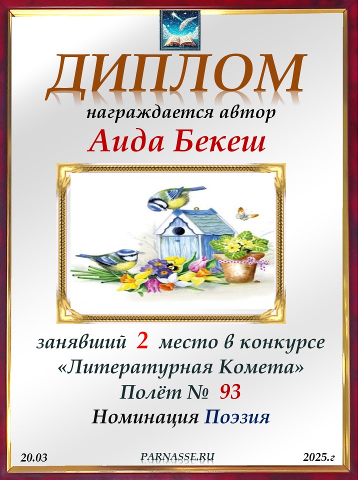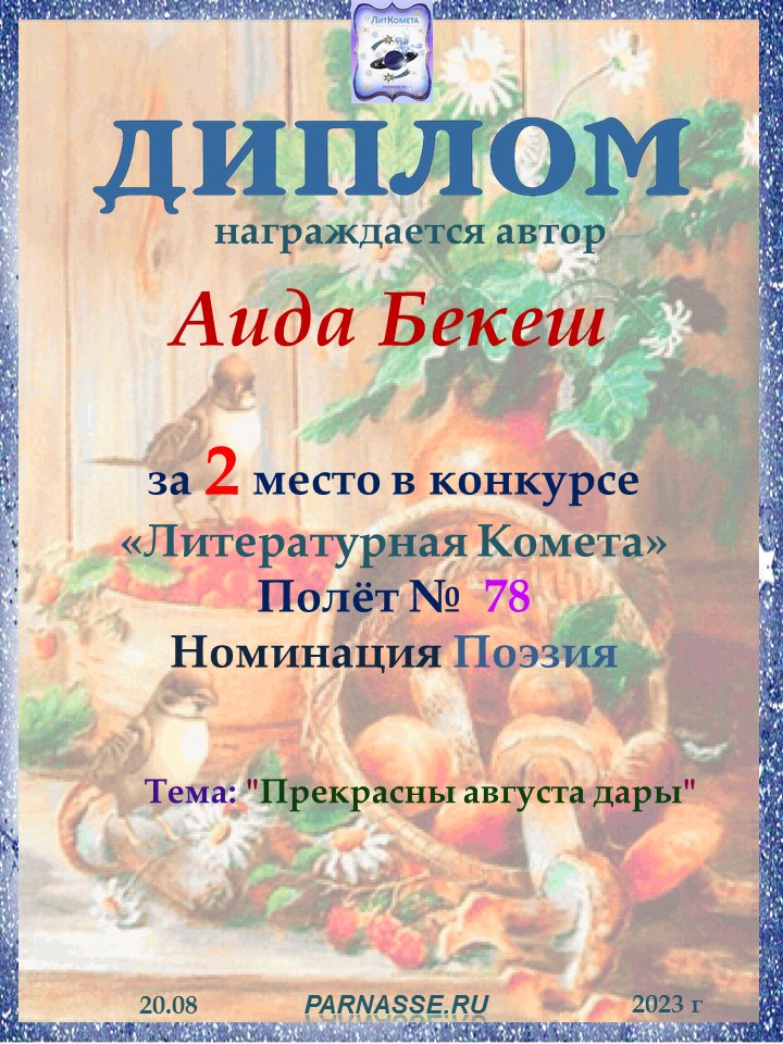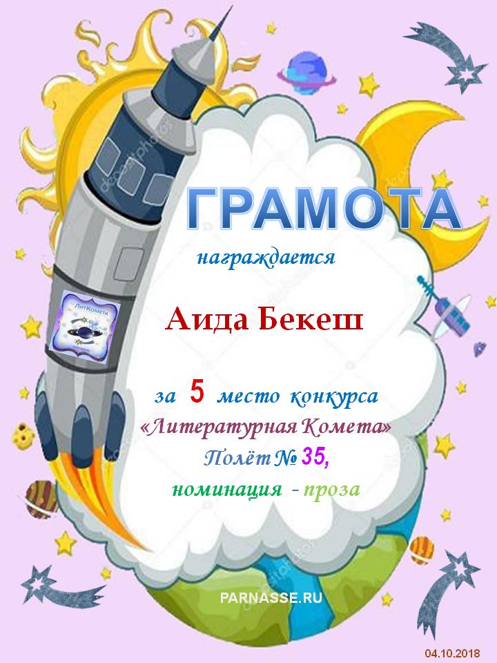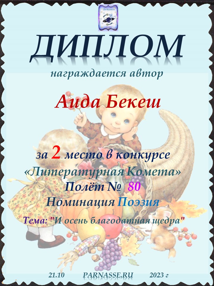 Поздравляю с занятым 5 местом в конкурсе «Литературная Комета – Полёт № 35» - номинация поэзия!