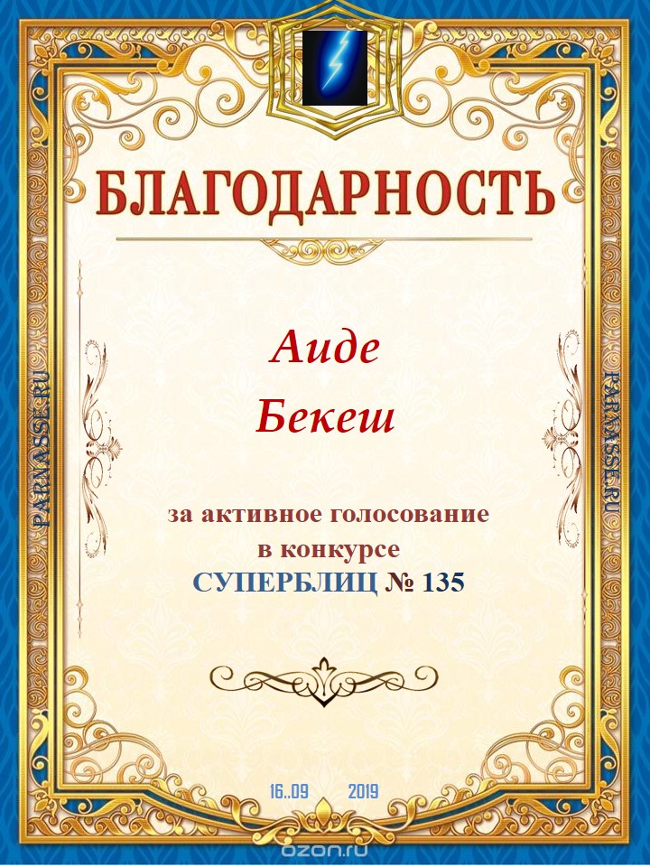 Благодарность за активное голосование в 216 конкурсе СУПЕРБЛИЦА!СПАСИБО БОЛЬШОЕ!