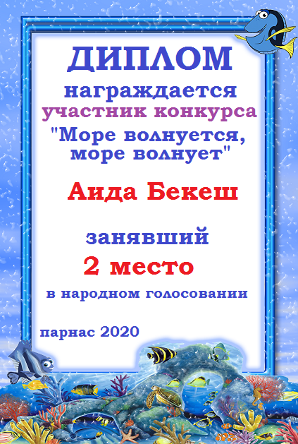 Аида,поздравляем с занятым 3 местом в номинации - Рассказы и сказки о море "Морские путешествия" - народное голосование! Желаем новых творческих побед!