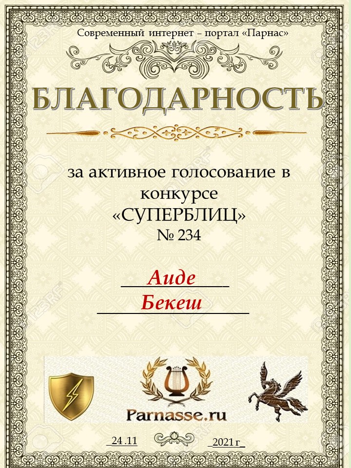 Благодарность за активное голосование в 234 конкурсе СУПЕРБЛИЦА!СПАСИБО БОЛЬШОЕ!