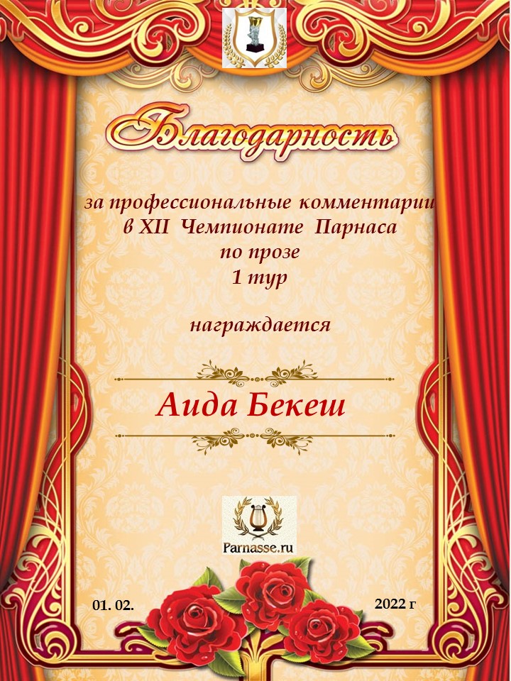 Спасибо за профессиональные комментарии в 1 туре XI Чемпионата Парнаса по Прозе!