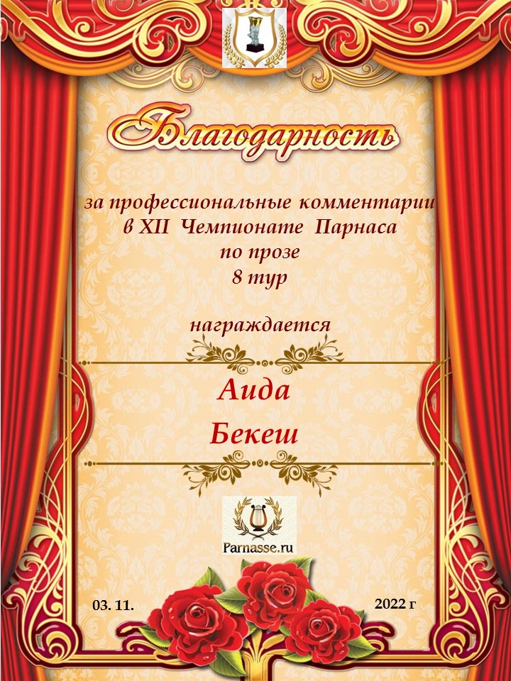Спасибо за профессиональные комментарии в 8 туре X Чемпионата Парнаса по Прозе!