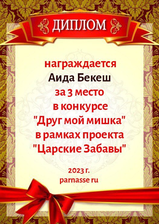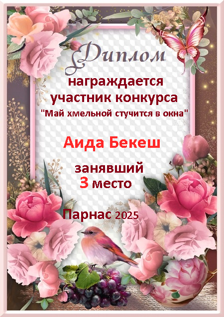 3 место место в судейском голосовании по итогам конкурса "Май хмельной стучится в окна"