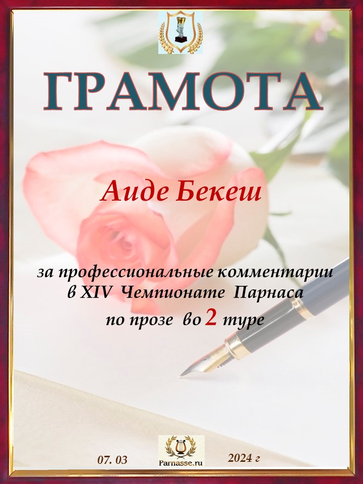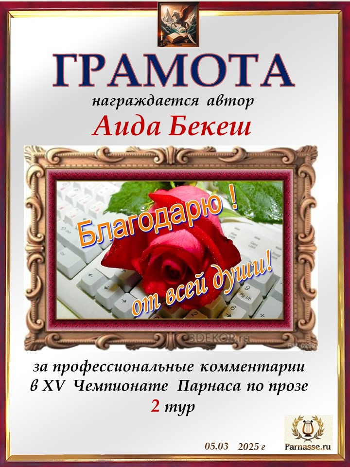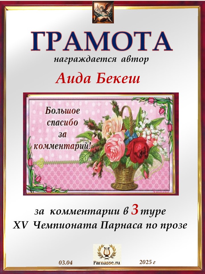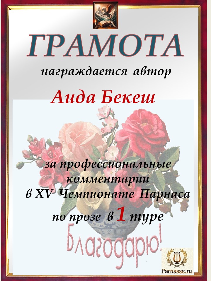 ![]() Медаль комментатора в 3 туре XV Чемпионата Парнаса по прозе