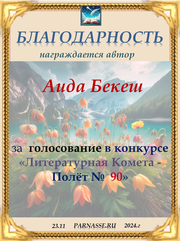 ![]() Медаль читателя в конкурсе "ЛитКомета - Полёт № 96"
