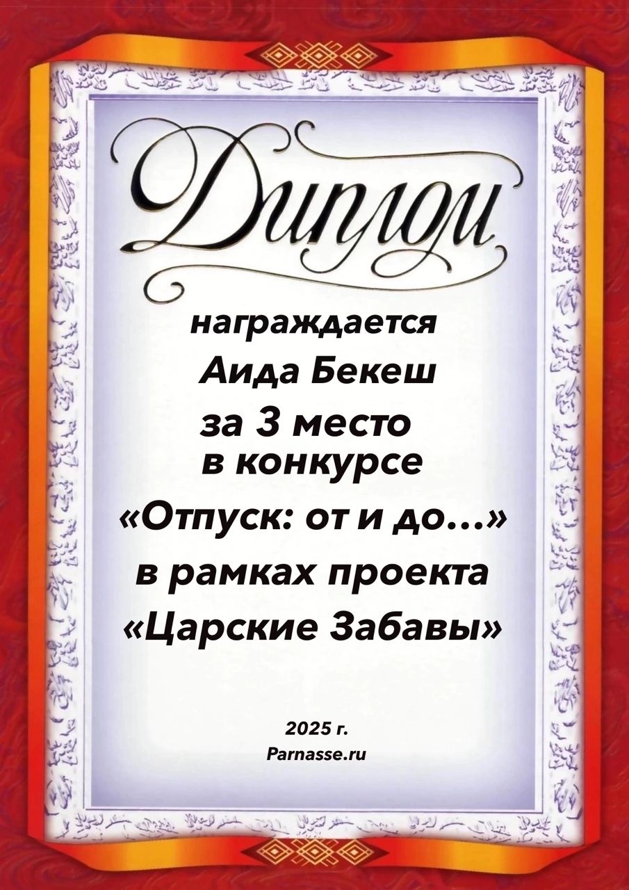 3 место в конкурсе "Отпуск: от и до".. Поздравляем!
