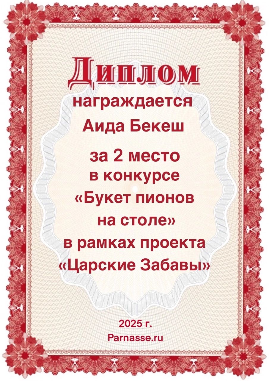 2 место в конкурсе "Букет пионов на столе". Поздравляем!