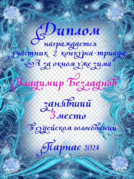 Первое место в судейском голосовании по итогам третьего конкурса - триада "А зима уже не за горами"