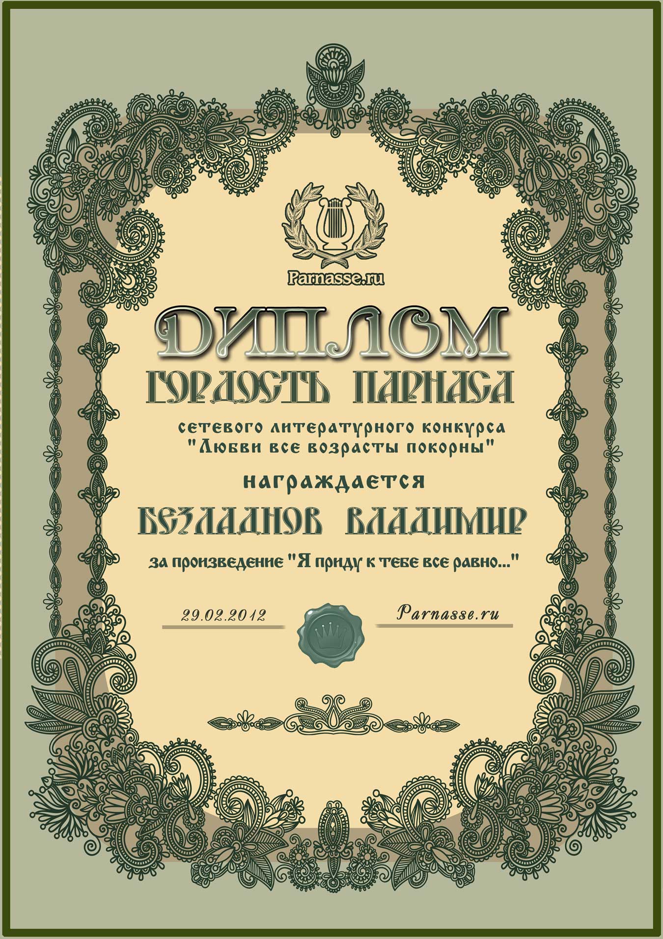 ![]() Лауреат конкурса «ЛЮБВИ ВСЕ ВОЗРАСТЫ ПОКОРНЫ»