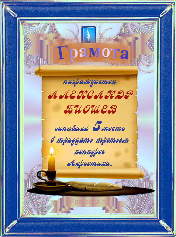 Грамота за 5 место во 2 годовом Альтернативном итоговом конкурсе АКРОСТИХА! ПОЗДРАВЛЯЮ!