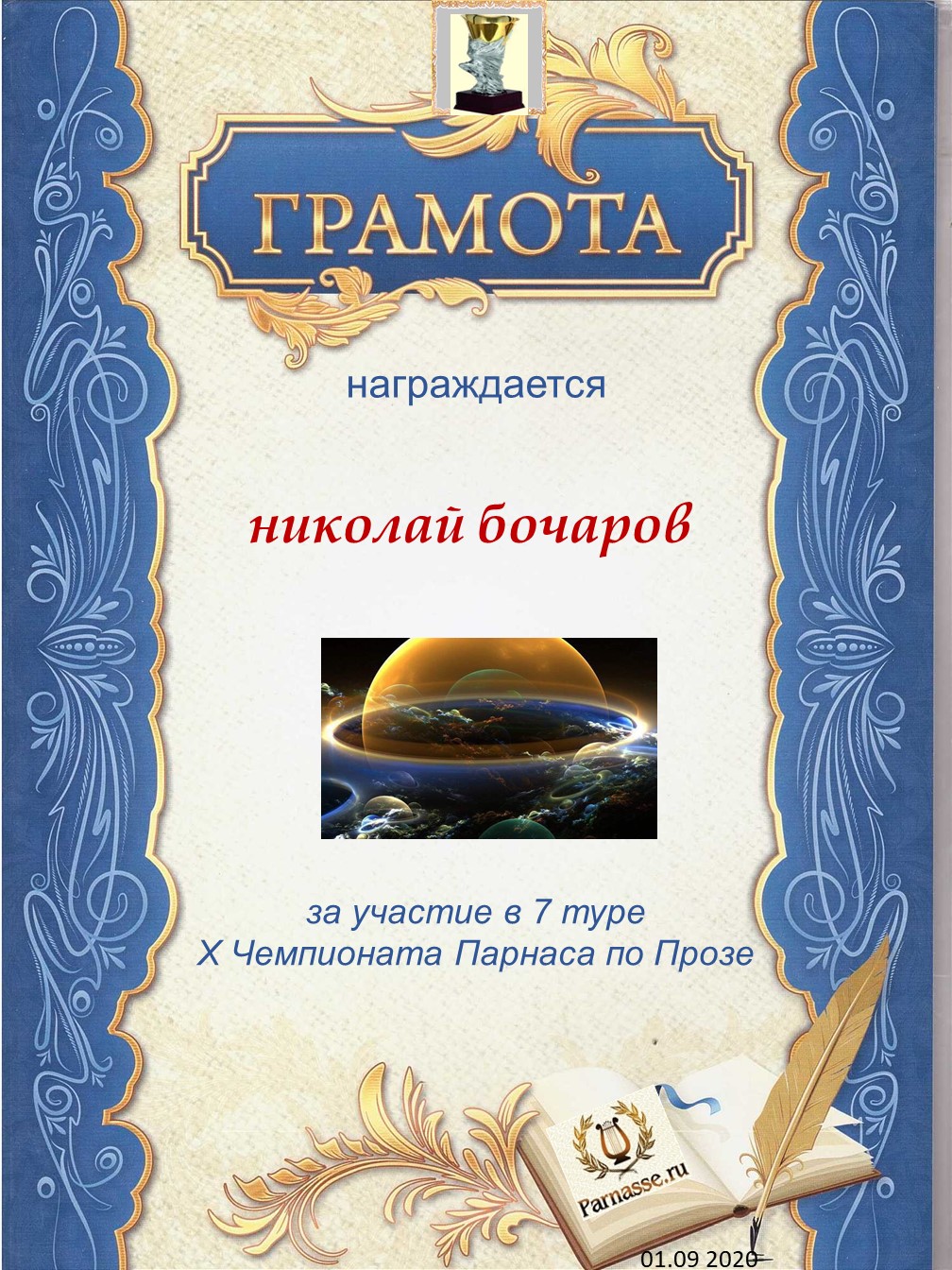 Вручается за участие в X Чемпионате Парнаса по Прозе - 7 тур