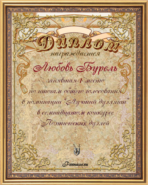 Диплом за 3-е место в номинации "Лучшая дуэль" по итогам общего голосования в седьмом конкурсе поэтических дуэлей