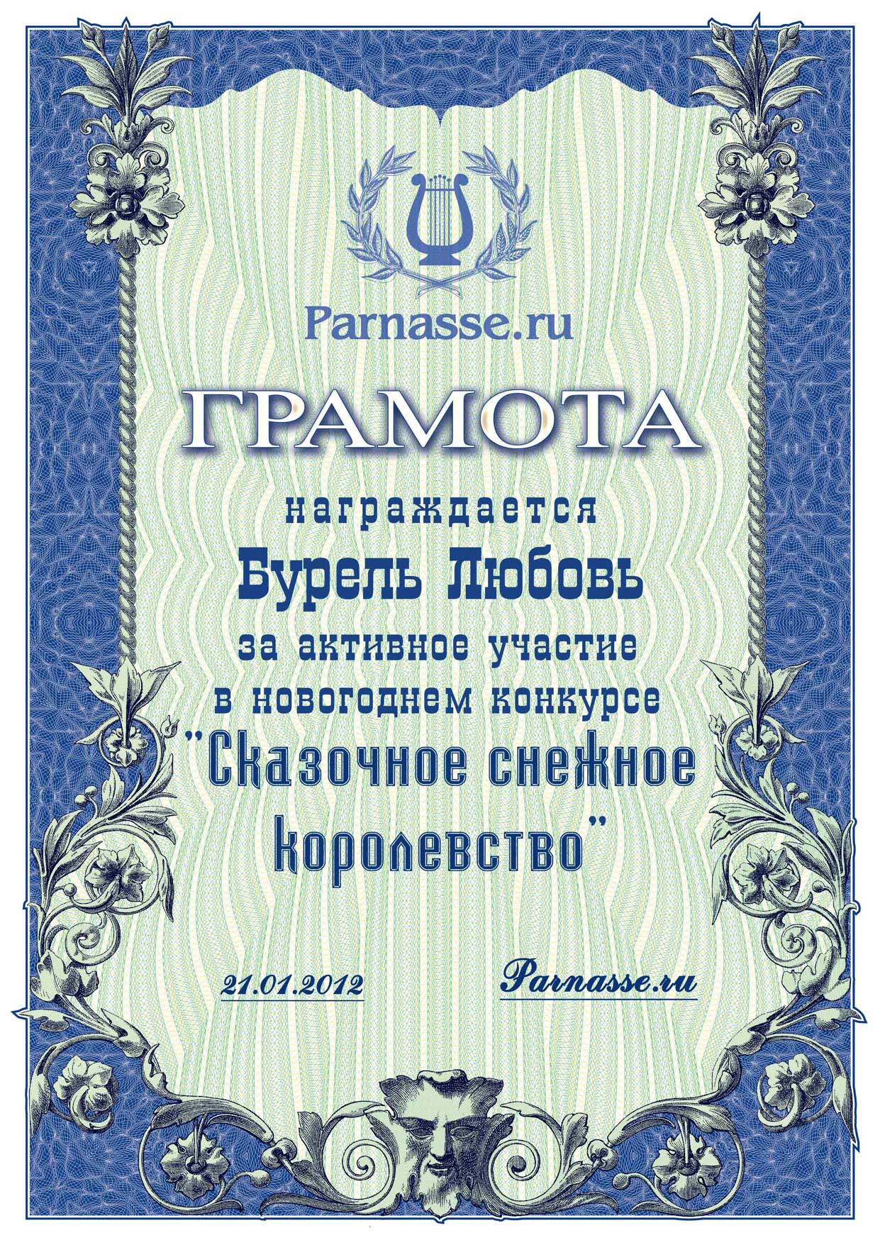 Похвальная грамота за 4 место в конкурсе лимериков № 26 (10.12.2012 г.)