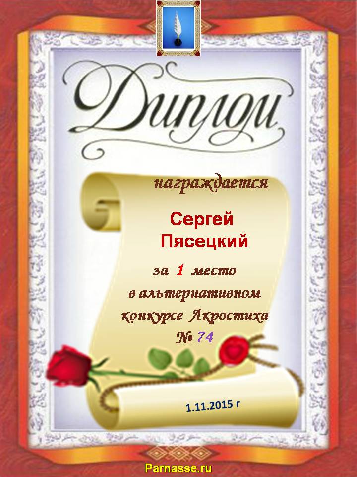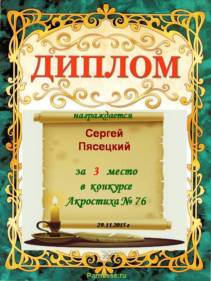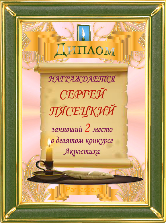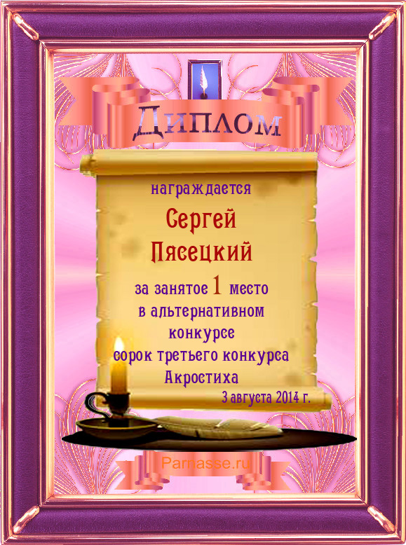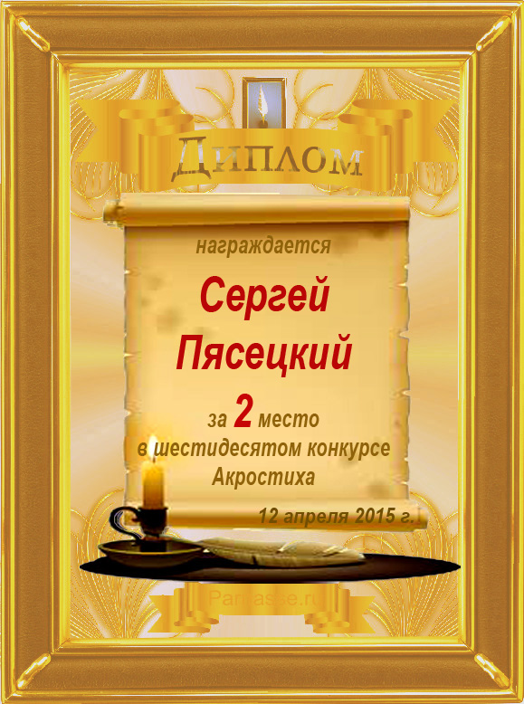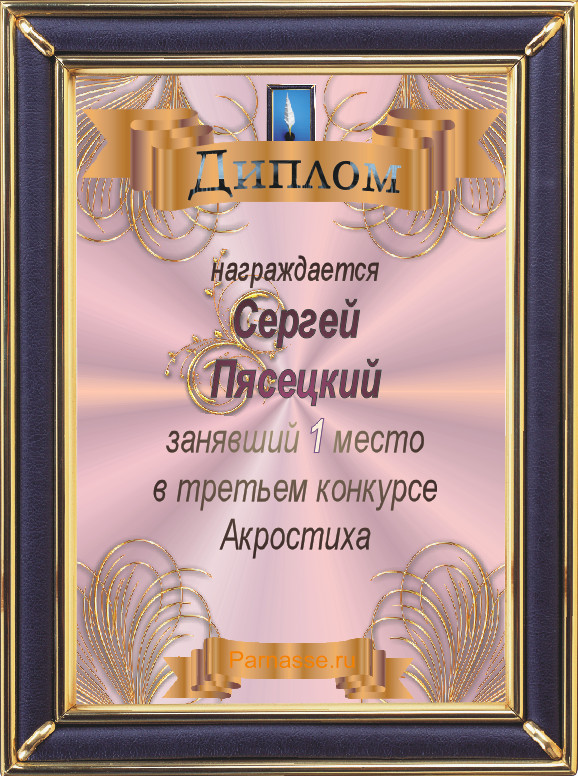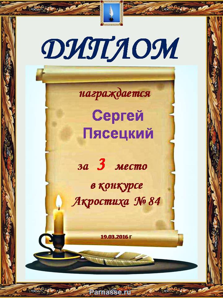 Диплом за 3 место во 2 годовом конкурсе Акростиха по итогам судейского голосования (Альтернатива)! ПОЗДРАВЛЯЮ!