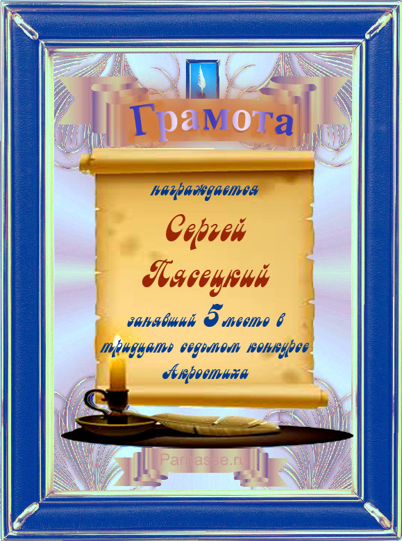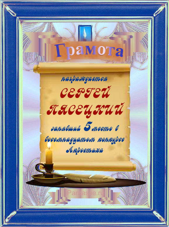 Грамота за 5 место во 2 годовом конкурсе Акростиха по итогам судейского голосования! ПОЗДРАВЛЯЮ!